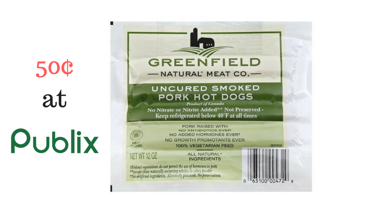 This week at Publix, pick up Greenfield Natural Meat Company’s uncured hot dogs for only 50¢. Stack the coupons below for a great deal on natural hot dogs!
