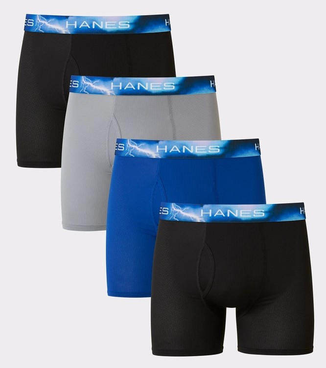 Hanes Sport Men’s Air Mesh Boxer Brief Underwear, X-Temp, Black/Grey/Blue, 4-Pack – $24 (reg. $42)