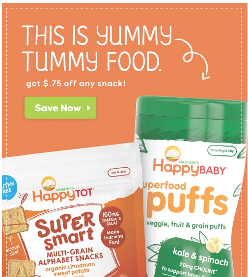 Check out this deal on Puffs baby food at Kroger! You can grab Happy Baby Organic Superfood Puffs for $1.75 or $2.25 yogurt snacks. Print your coupons while available.