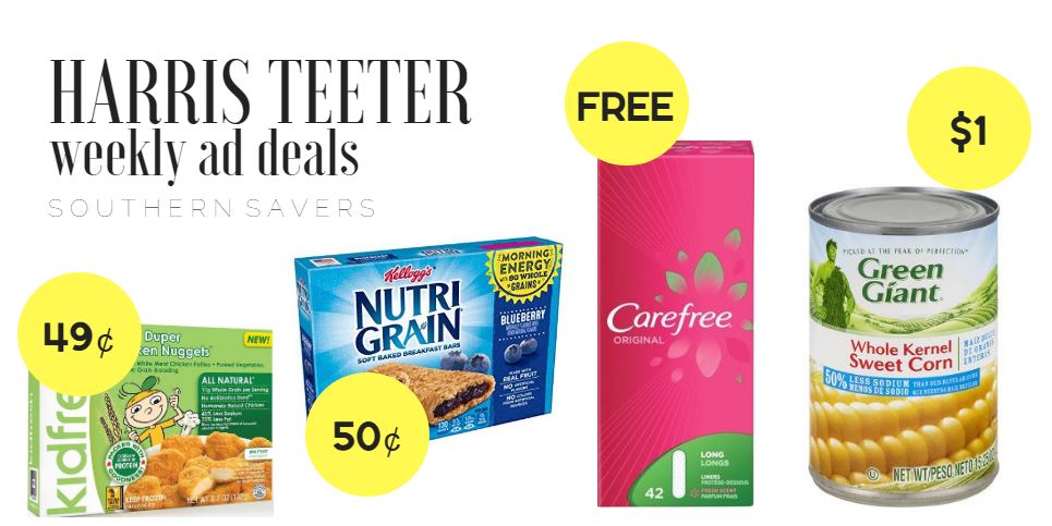 Here are the deals from the new Harris Teeter weekly ad that starts 7/17. Get FREE pantiliners, Kidfresh meals for 49¢, and more.