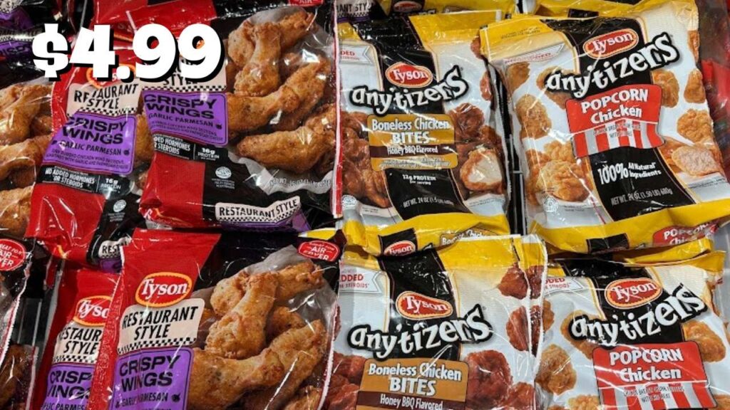 - Tyson Frozen Chicken, 16-28.05 oz, $4.99 with eCoupon, limit 5