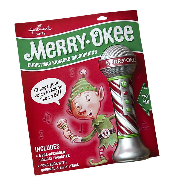 One of our favorite things Hallmark sent this year is Merry-Okee.  It’s a microphone that has 6 pre-recorded songs on it and when you sing into the microphone it changes your voice to sound like an elf.  My girls love to sing so this is perfect for them… and the silly elf sounds are an added bonus!  I also love that this isn’t a toy that one person sits and plays quietly with, but instead a toy that gets every involved.