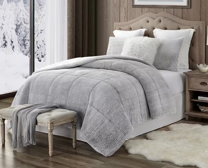 Premium Ultra-Soft 3-Piece Grey Faux Fur Reverse to Sherpa Full/Queen Comforter Set – $47 (reg. $94.73)