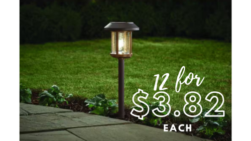 For a limited time at Home Depot you can score a great deal on outdoor path lights! These Hampton Bay Solar Outdoor LED Path Lights in bronze are only $5.88 each. Buy 12 and get 35% off, making them just $3.82 ea ($70.56 total)! And the best part – shipping is free!