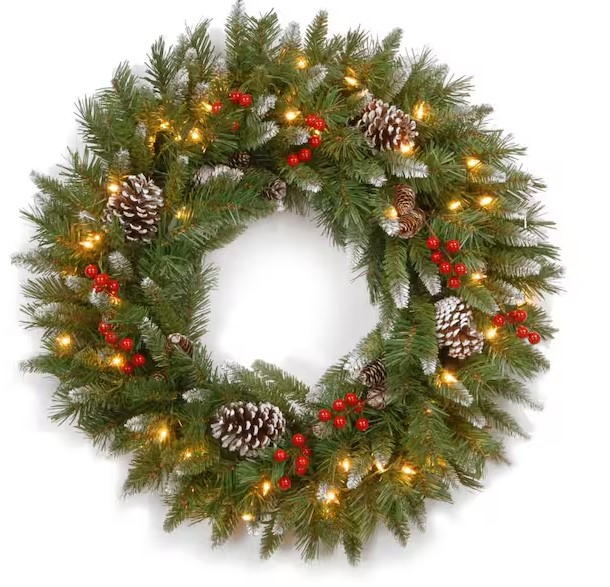 Frosted Berry 24 in. Artificial Christmas Wreath with Clear Lights – $29.98 (reg. $43)