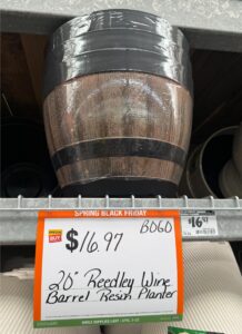 Reedley Wine Barrel Resin Planter – BOGO at $16.97
