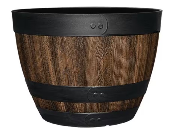 Vigoro 20 in. Reedley Large Kentucky Walnut Brown Resin Wine Barrel Planter – B1G1 at $16.97