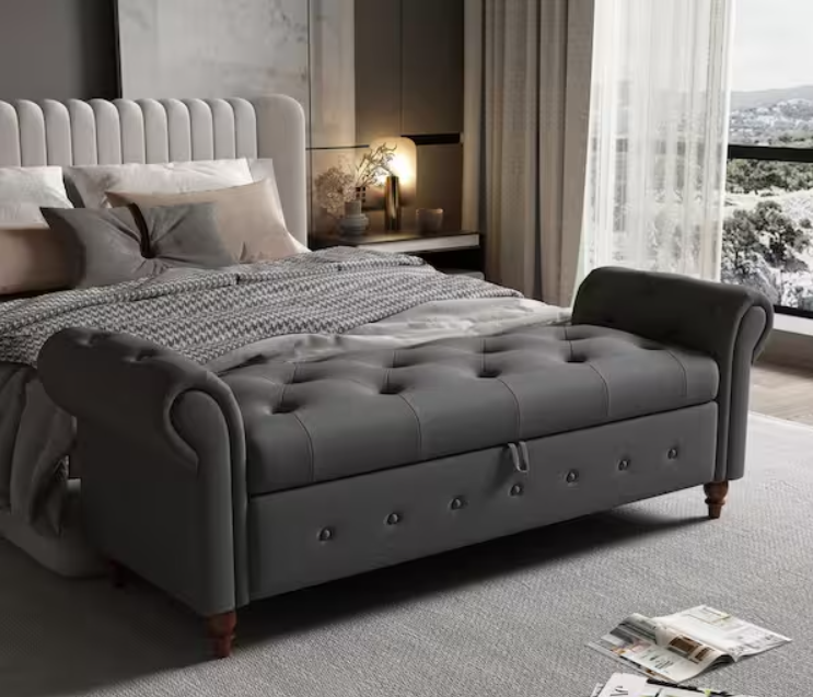 Dark Gray Tufted Armed Storage Bedroom Bench – $194.35 (reg. $327)