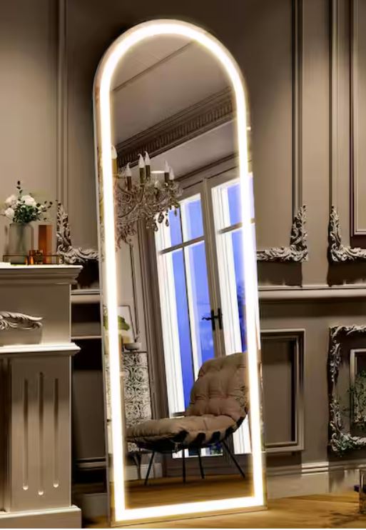 20 in. W x 63 in. H LED Light Arched White Aluminum Alloy Framed Rounded Full Length Mirror $99.17 (reg. $189.99)