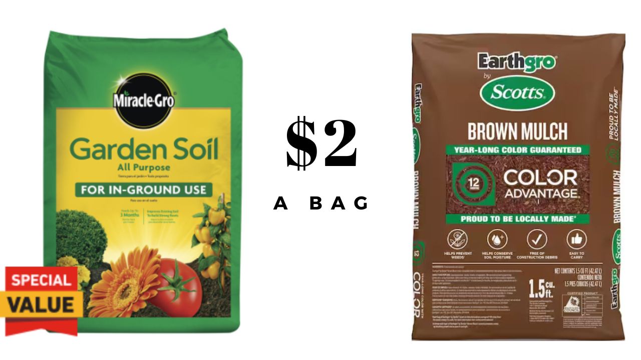 Shop the Spring sales at Home Depot to score $2 Earthgro by Scotts Mulch and Miracle-Gro Garden Soil. This is their best price!