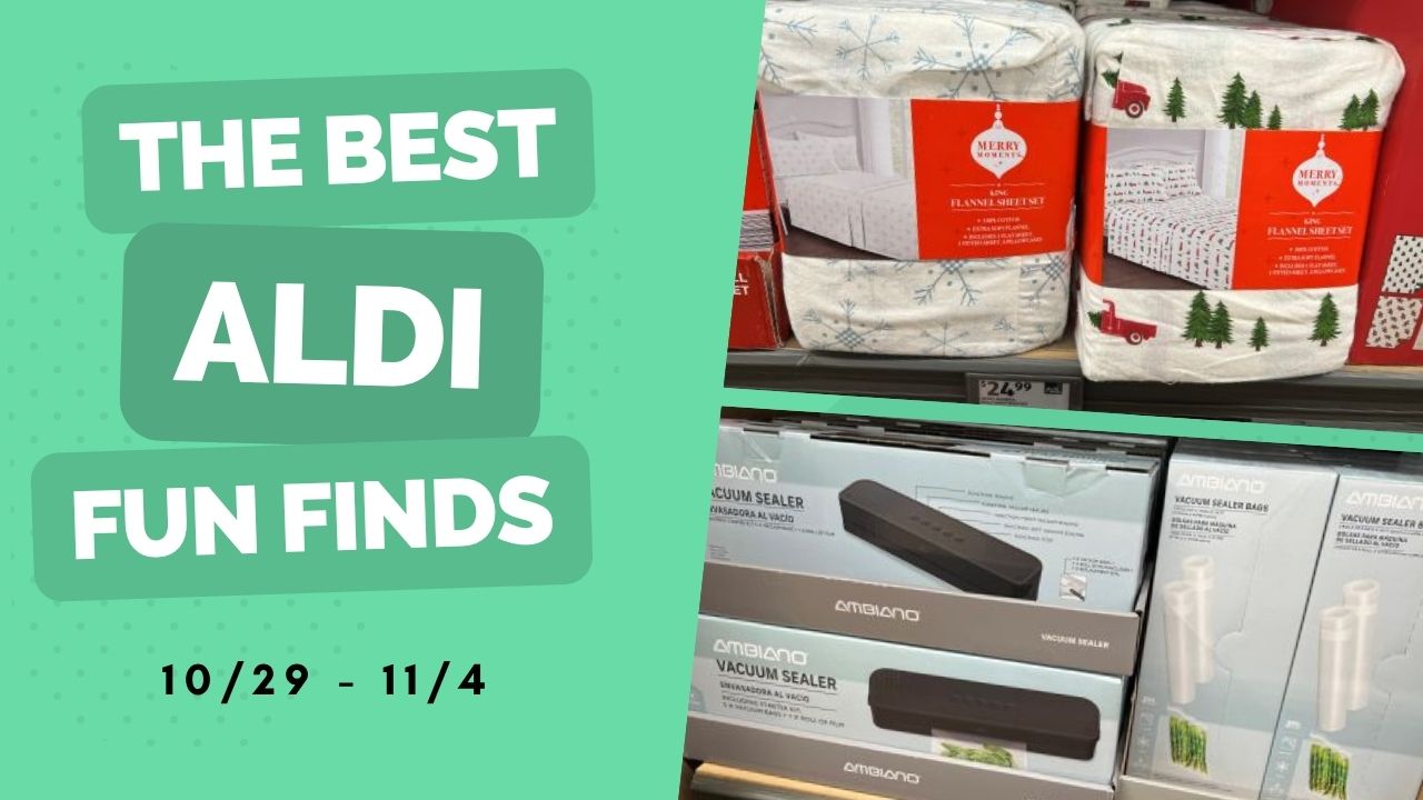 The first shipment of Christmas items have hit Aldi! Plus, this week grab some fabulous kitchen items for your big meal! They have have some cozy flannel sheets for just $24.99 and a vacuum sealer for just $19.99! Note: Aldi products may vary by location. What will you find in your Aldi?? Aldi Fun Finds: