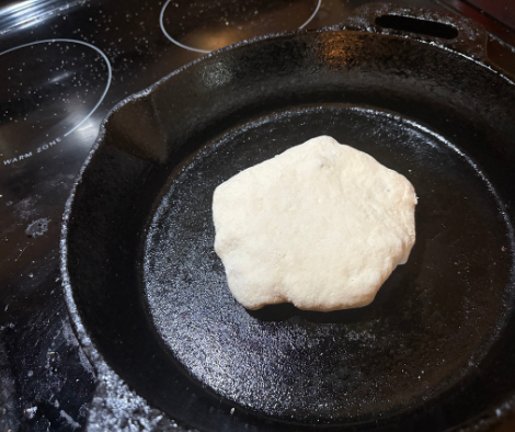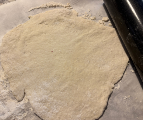 Use a rolling pin and more flour, if needed, to roll it out into a circle-ish shape (it doesn’t need to be perfect!).