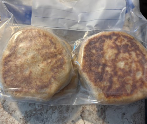 A friend introduced me to dough using only two ingredients: self-rising flour and plain Greek yogurt. She used the dough to make round hot pockets, and hers were filled with pizza toppings. They were delicious and my family loved them, so I decided to try making my own with breakfast ingredients so we could have something easy to reheat on busy mornings. These homemade breakfast hot pockets are absolutely delicious and are relatively high in protein due to the Greek yogurt in the dough. I now have a stash of them in my freezer!