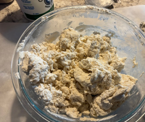 - Stir together the Greek yogurt and the flour until a dough forms.