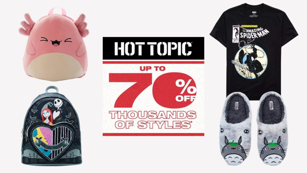 There is a hot sale happening at Hot Topic! Score deals up to 70% off on popular items like Loungefly backpacks, graphic tees, accessories and more!