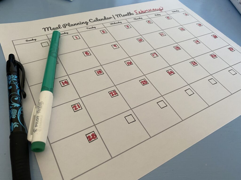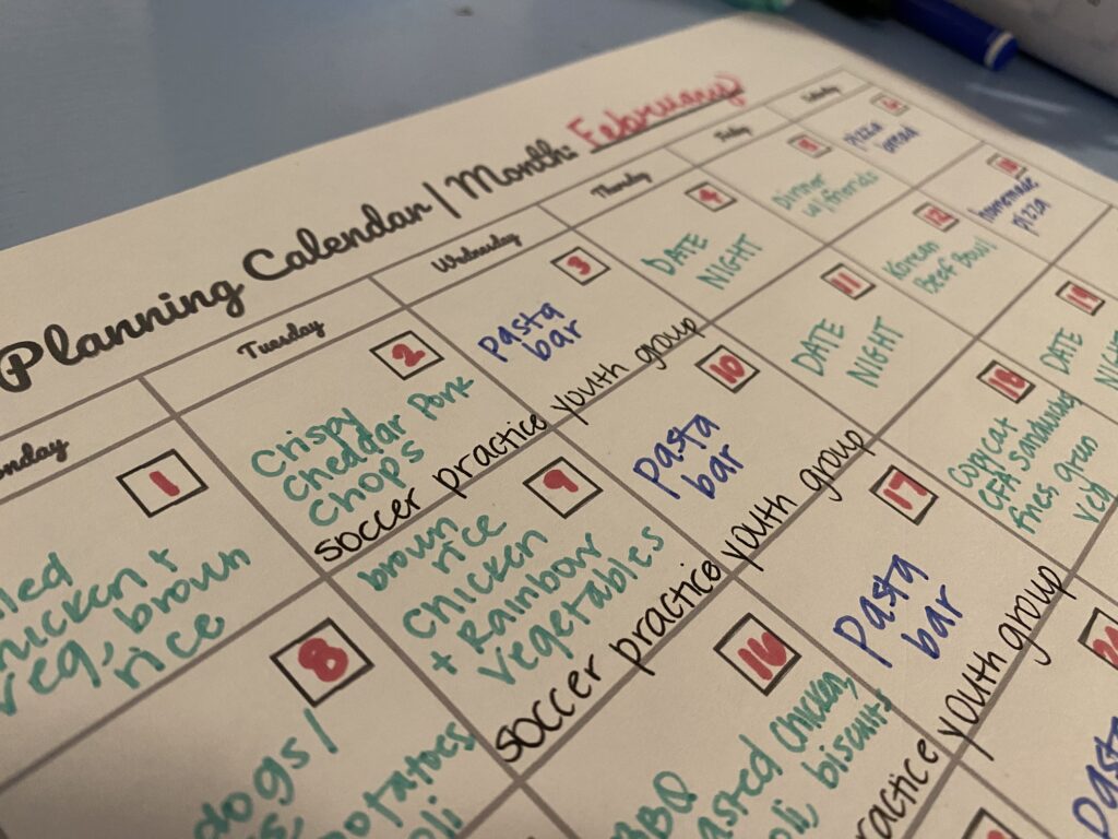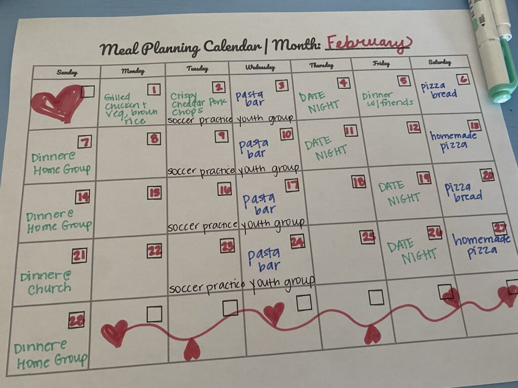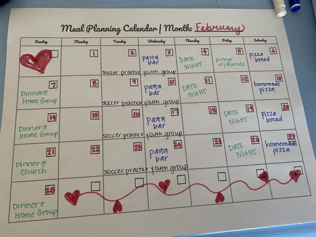 For this post, I’m pretending to plan meals for an imaginary February that looks something like our life right now. You may have more or less things going on than we do, but that’s the beauty of this system! It works for whatever your life looks like.