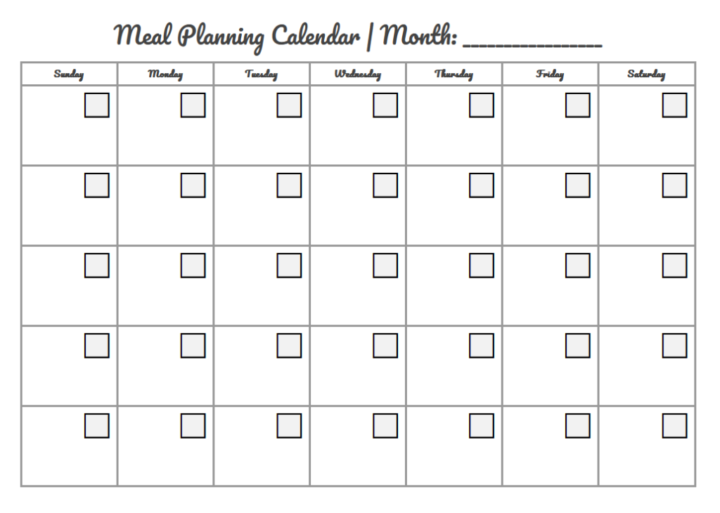 Start by looking at the month as a whole. Fill in the dates, if needed. Then fill in activities and events, making sure to note nights when you need to have an easy dinner (sports practices, church meetings, getting off work late, etc.). This will guide your thinking as you meal plan.