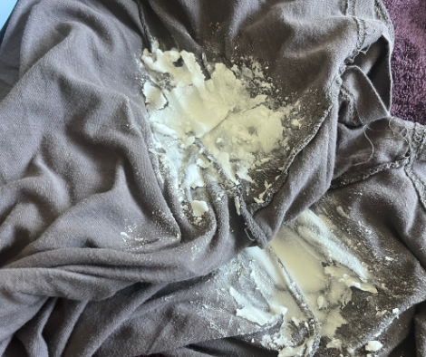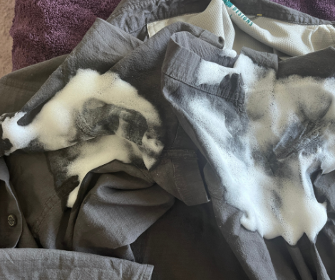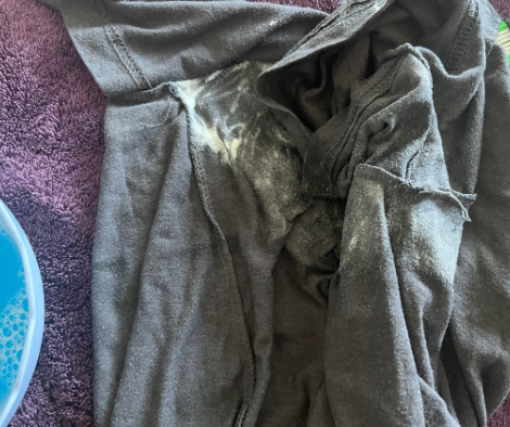 I’ve used borax along with other ingredients to strip laundry, so it made sense that it might work to get deodorant build up off of shirts. I made a paste with water and scrubbed it in, and then let it sit for an hour.