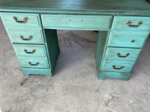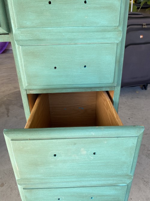 Here’s the desk after the last coat! I was so pleased with the final color. At this point, I just had to put the hardware on the drawers and put the drawers back into the desk.