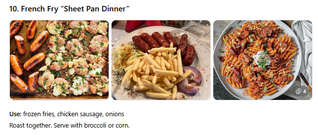 This was the most interesting idea. I’ve never thought to do a sheet pan with french fries. However, I think it could work.