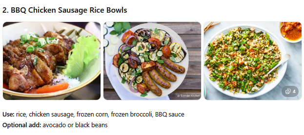 This idea was a new one to me. I’d never have thought to combine BBQ sauce with chicken sausage or even make rice bowls with a BBQ theme, but it was brilliant!