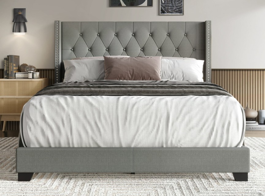 Castle Place Nailhead Trim Wingback Linen Upholstered Queen Bed – $130 (reg. $208)