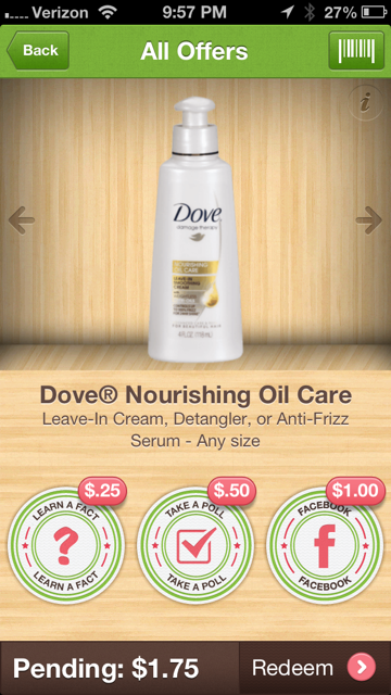 Notice that it says “Earn”… it’s not an automatic $1.75 off. They make you work for it a bit. You’ll learn a fact, take a poll and then for the big money share your savings on Facebook.