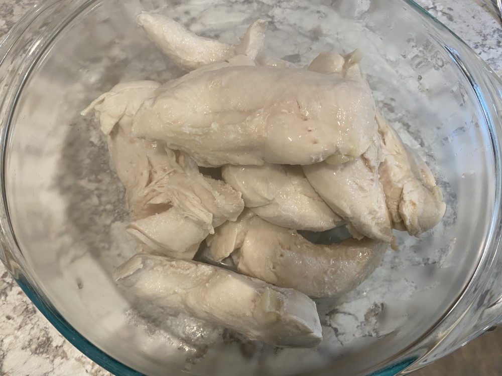 At this point, if you want larger pieces of chicken, you can just put it in a bowl and do with it what you will. But if you want shredded chicken, keep reading.