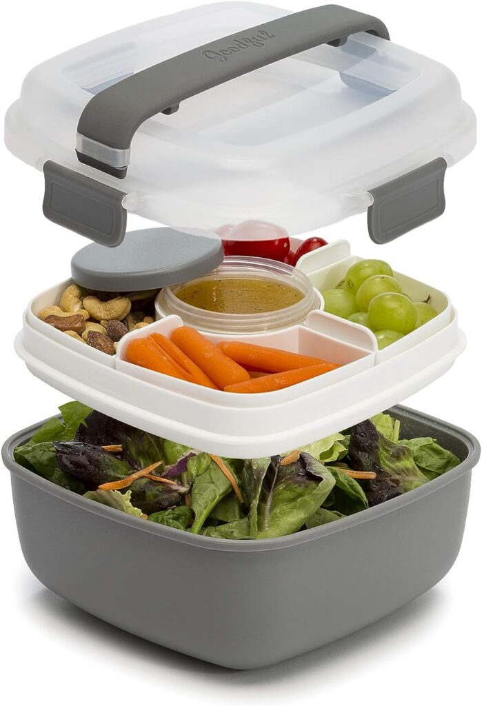 with 4 removable topping trays, 3 oz. dressing cup, Leak-Proof