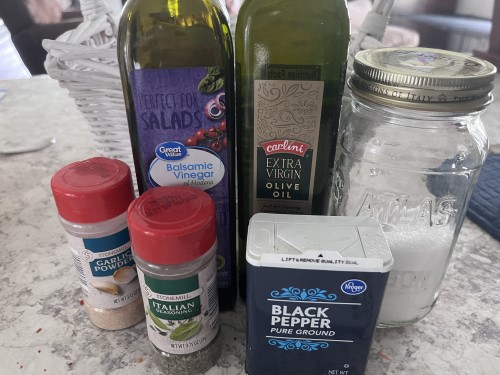 For the marinade, you’ll need balsamic vinegar, extra virgin olive oil, salt, garlic powder, Italian seasoning, and black pepper.