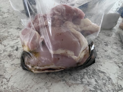 - Place the chicken in the ziptop bag, close the bag, and use your hands to massage the chicken into the marinade. Place the bag in the fridge and let marinade for a few hours or even overnight.