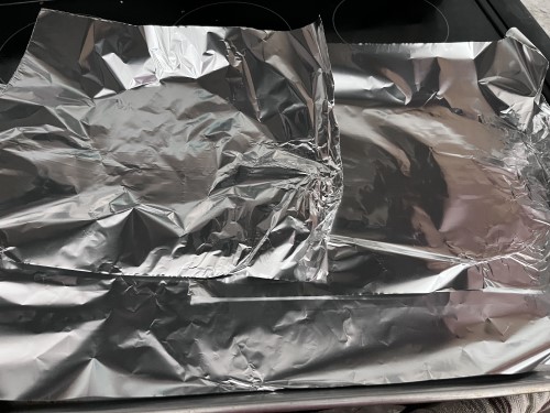 Once you’re ready to make dinner, preheat the oven to 425 and cover an extra large sheet pan with foil (you can also use two smaller sheet pans, as long as they fit in your oven at the same time!).