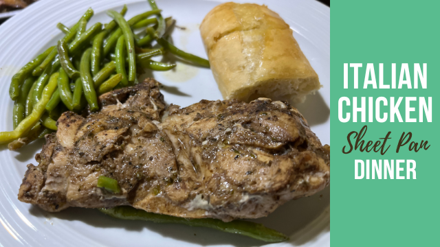 In the summer, I’m really into meals that don’t require a lot of time standing around. With a sheet pan meal, I can do other things while dinner is in the oven and don’t need to stay in the kitchen. This Italian chicken sheet pan dinner was a big hit with everyone in my family, and it took less than an hour of prep and cooking time, plus the time to marinade the chicken. That means you can get the chicken in the marinade in the morning, which takes 10 minutes or less. Then it’s just a matter of getting the chicken and green beans on the pan and cooking it all (which takes about 30-35 minutes). You won’t regret trying this!