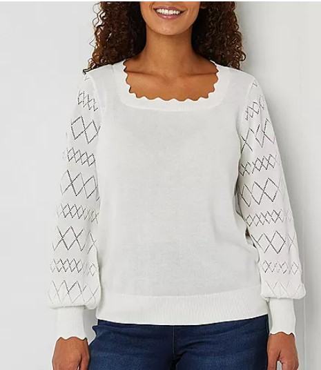 Liz Claiborne Womens Scallop Neck Long Sleeve Pullover Sweater – $33.99 (reg. $49)