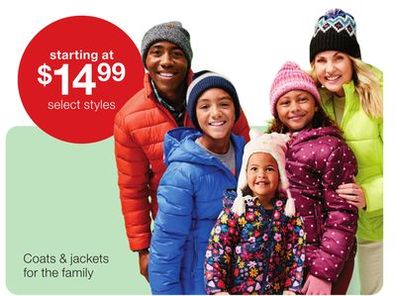 Coats & jackets for the family – starting at $14.99