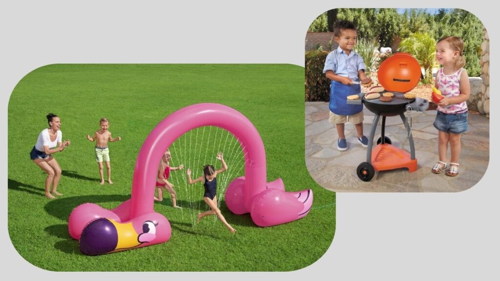 The key to keeping kids outdoors is to make it fun with water play and imaginative play!