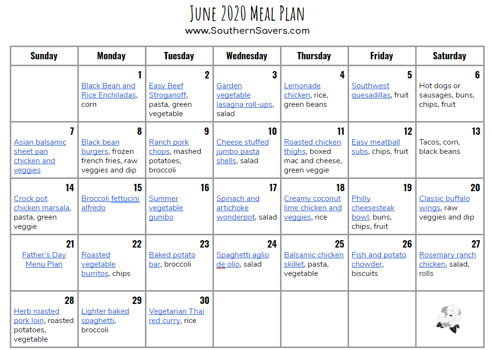 June 2020 Monthly Meal Plan