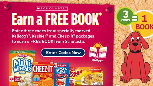 Kellogg’s Family Rewards is offering a FREE Scholastic Book when you enter (3) different codes from specially marked Kellogg’s, Keebler and Cheez-it packages.