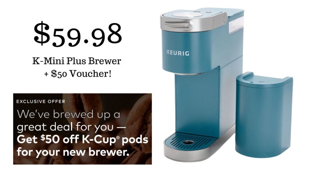 Hurry to QVC where they are offering this Keurig K-Mini Plus Single-Serve Coffee Maker with $50 K-Cup Voucher for just $59.98 shipped!!
