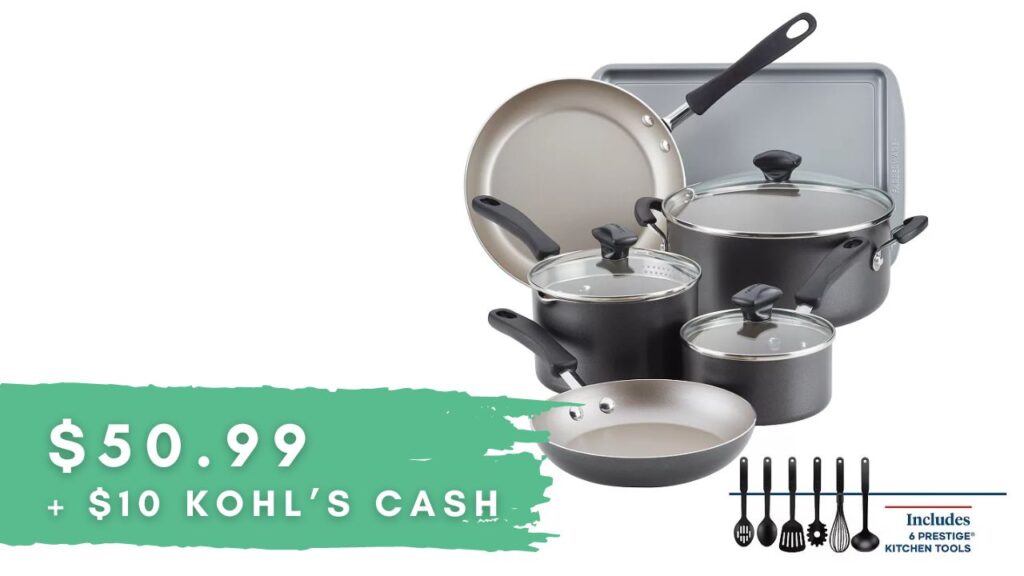 Kohl’s | 15-Piece Farberware Cookware Set | $50.99 + $10 Kohl’s Cash