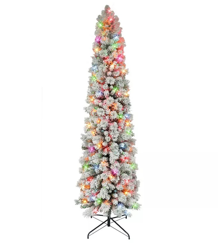 Puleo International 6.5-ft. Pre-Lit Flocked Portland Pine Pencil Artificial Christmas Tree – $98.79 (reg. $300)