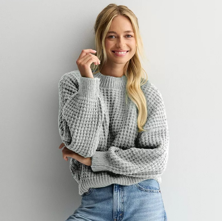 Juniors’ SO Balloon Sleeve Waffle Sweater – $18.74 (reg. $30)