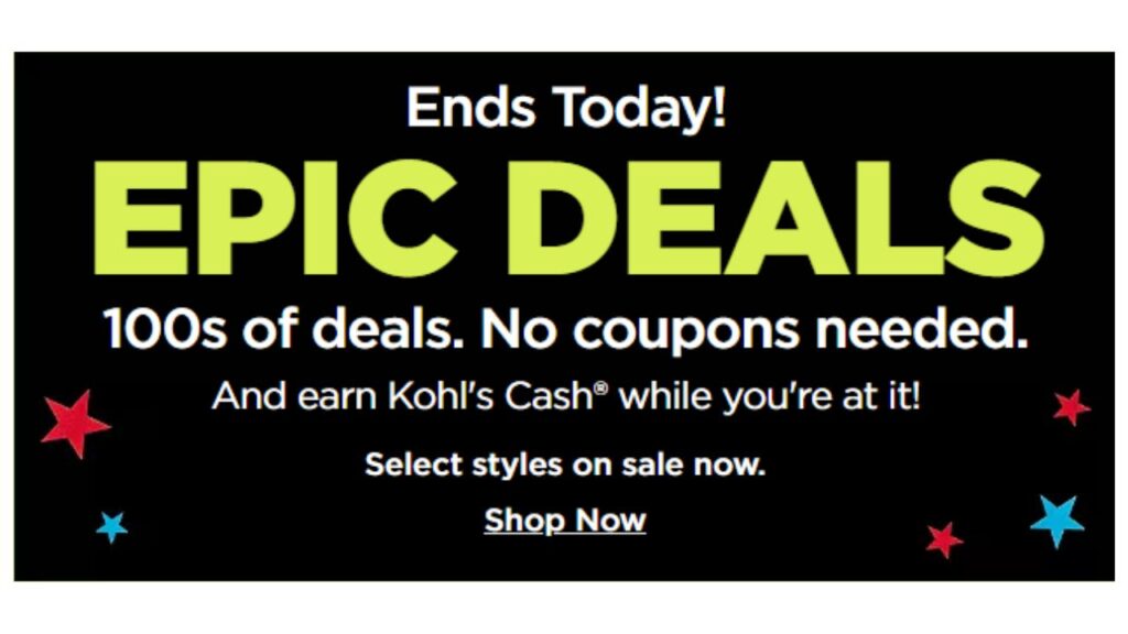 Hurry to shop the Epic deals at Kohl’s! Find deals on home goods and apparel up to 85% off, plus earn $10 Kohl’s Cash Back for every $50 spent through today, 7/4.