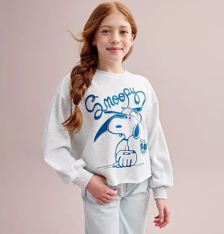 Girls’ Peanuts Snoopy Baseball Crop Sweatshirt – $8.49 (Reg $25)