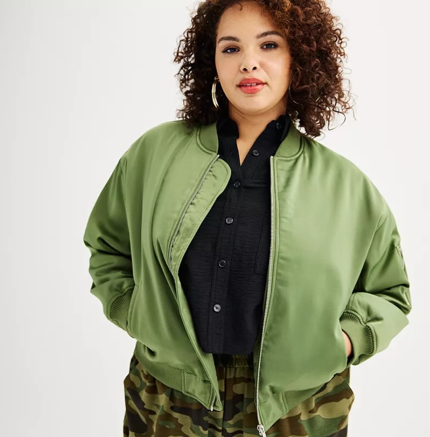 Plus Size INTEMPO Classic Satin Bomber Jacket – $23.28 (reg. $69)