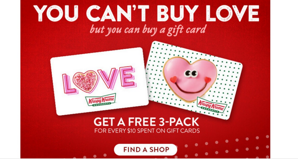 Head over to your local participating Krispy Kreme Store to get a free Doughnut 3-Pack Box for every $10 spent on Gift Cards.