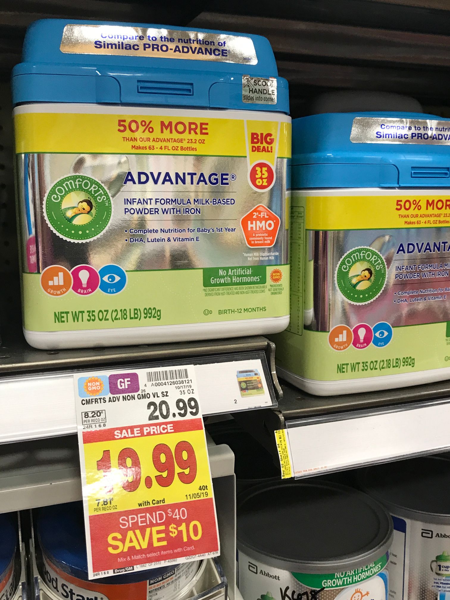 First, a huge way to save on formula is going with the Kroger Comforts brand. Switching to the Kroger brand will save over $400 a year compared to buying national brands! Designed to suit your baby’s individual needs, Kroger Comforts formulas provide complete nutrition just like leading brands. The best part for you… they are made with quality nutrition at a price that is much more affordable than national brands.