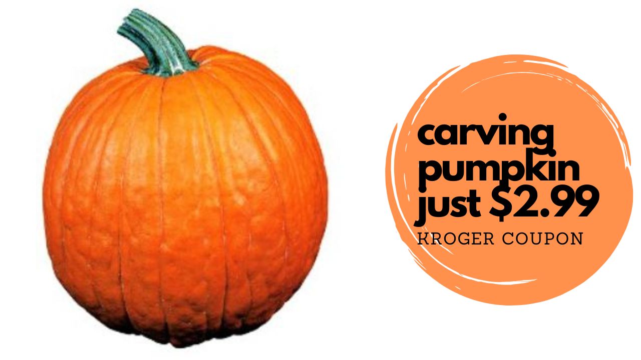 Head over and load a new Kroger digital coupon to grab carving pumpkins for just $2.99!! This deal is good through tomorrow night and you can get up to (3) pumpkins!
