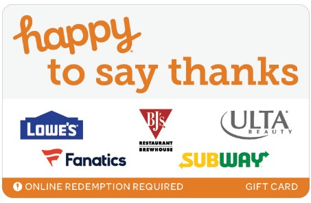 Get a $5 Bonus when you buy select $25 Happy Gift Cards