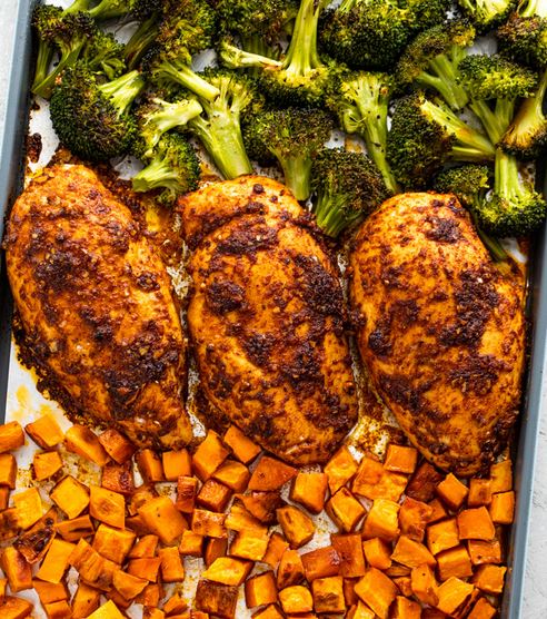 One-Pan Chicken, Sweet Potatoes & Broccoli